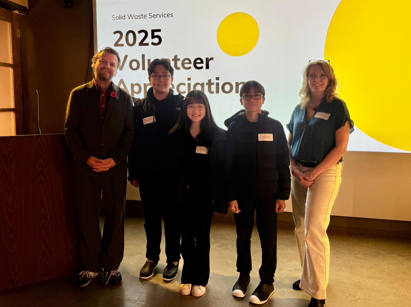 Sean Orr, City of Vancouver Councillor (left) and Michelle Harris, Associate Director of the Solid Waste Program (right) recognizing their leadership in keeping the city clean and safe.