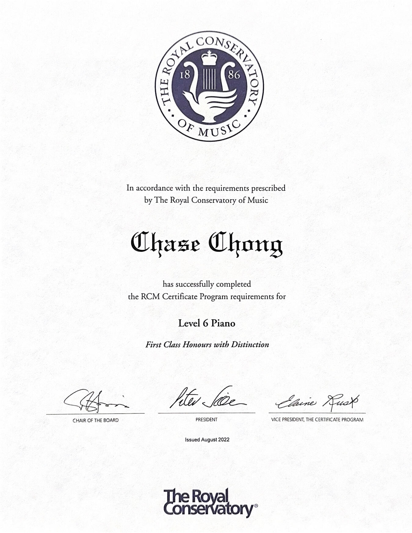 Chase first discovered his interest in the piano while living in Hong Kong, where he was captivated by the instrument’s ability to create expressive and emotive sound. Upon returning to Canada at the age of eight, he received his first piano and began formal studies with Ms Mia Bie. He later advanced under the guidance of Dr Jocelyn Lai, earning a Diploma in Piano Performance from the London College of Music, University of West London. In addition to the piano, Chase has also played the clarinet since elementary school and is currently a member of his high school’s senior concert band.Music has taught Chase focus, patience, and persistence. Since his first public recital at the University of British Columbia’s Roy Barnett Recital Hall at the age of nine, he has performed regularly in senior homes, Elite Young Artists concerts, and charity concerts supporting Lions Gate Hospital, Vancouver General Hospital, and the UBC Hospital Foundation, raising over CAD$10,000 to date. Through these performances, he has come to appreciate how music can offer comfort, build connection, and create shared moments of calm.Since the COVID-19 pandemic, these charity concerts have become more inclusive through livestreamed performances and the use of QR codes for online donations, allowing elderly and immunocompromised community members to continue enjoying concerts safely from home. For Chase, this experience deepened his understanding of music not merely as performance, but as an act of care, accessibility, and social responsibility.Chase received the Gold Award (Division IV, ages 14–18) at the 2025 Steinway Piano Competition Canada and was invited to perform at the world-renowned Carnegie Hall in New York. He is also a recipient of the 2024 Steinway Standards of Excellence Award and is recognised as a Steinway Young Scholar, one of the highest honours for young musicians who demonstrate excellence in artistry, academics, and community leadership.To Chase, music represents connection and care. Over the years, he has learned that healing comes from both science and the heart; from scientific knowledge that saves lives, and from music that brings calm, meaning, and hope. This balance continues to shape the person he strives to be, both in his community and, one day, in healthcare.